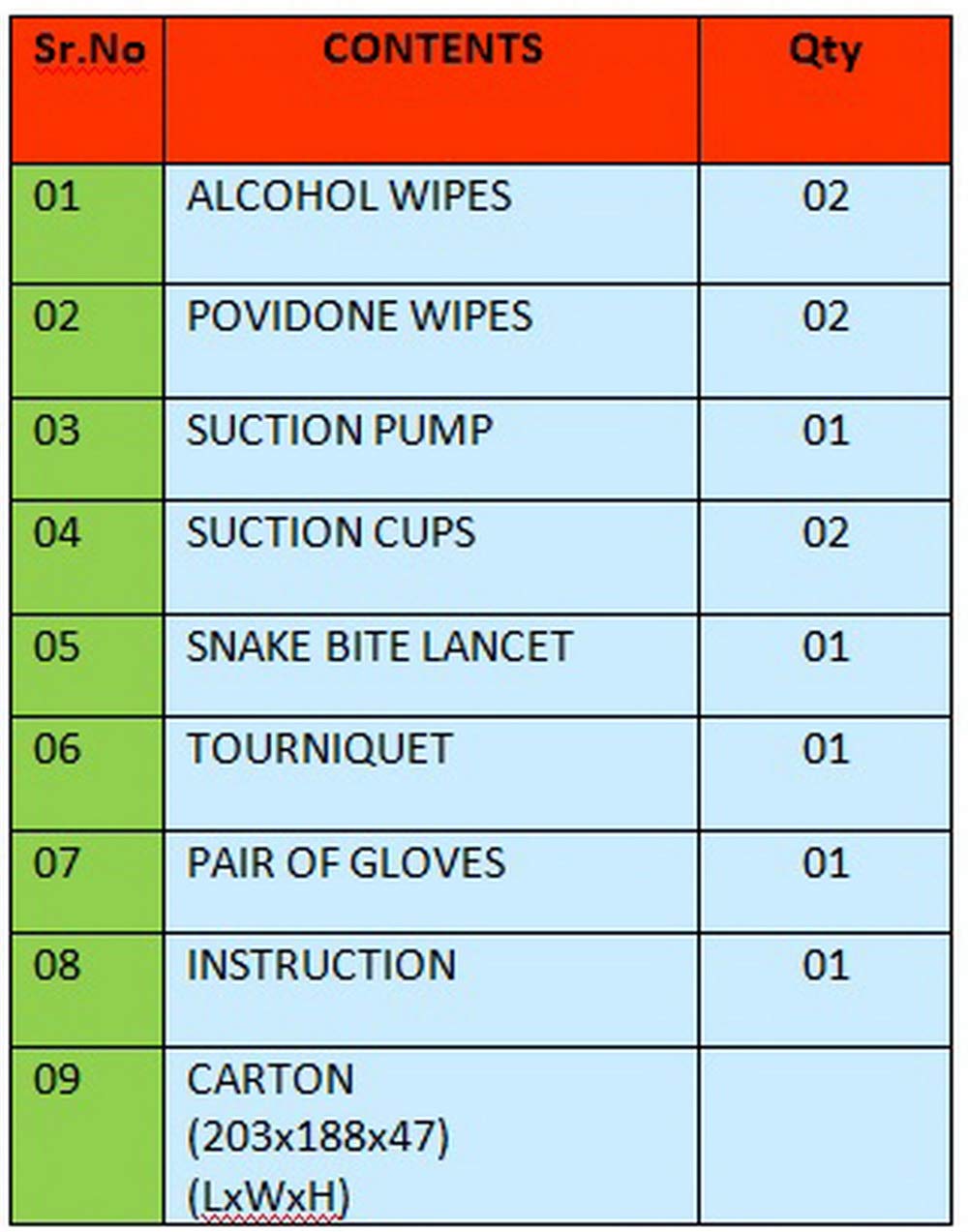 Snake-bite / Reptile-bite can be dangerous and sometimes lead to critical life-threatening situations that may need urgent attention. Thus it is very important to hold a safety kit that may be needed at the time of a Snake bite / Reptile bite. Get home this expertly crafted snake bite kit to use in terms of emergency.