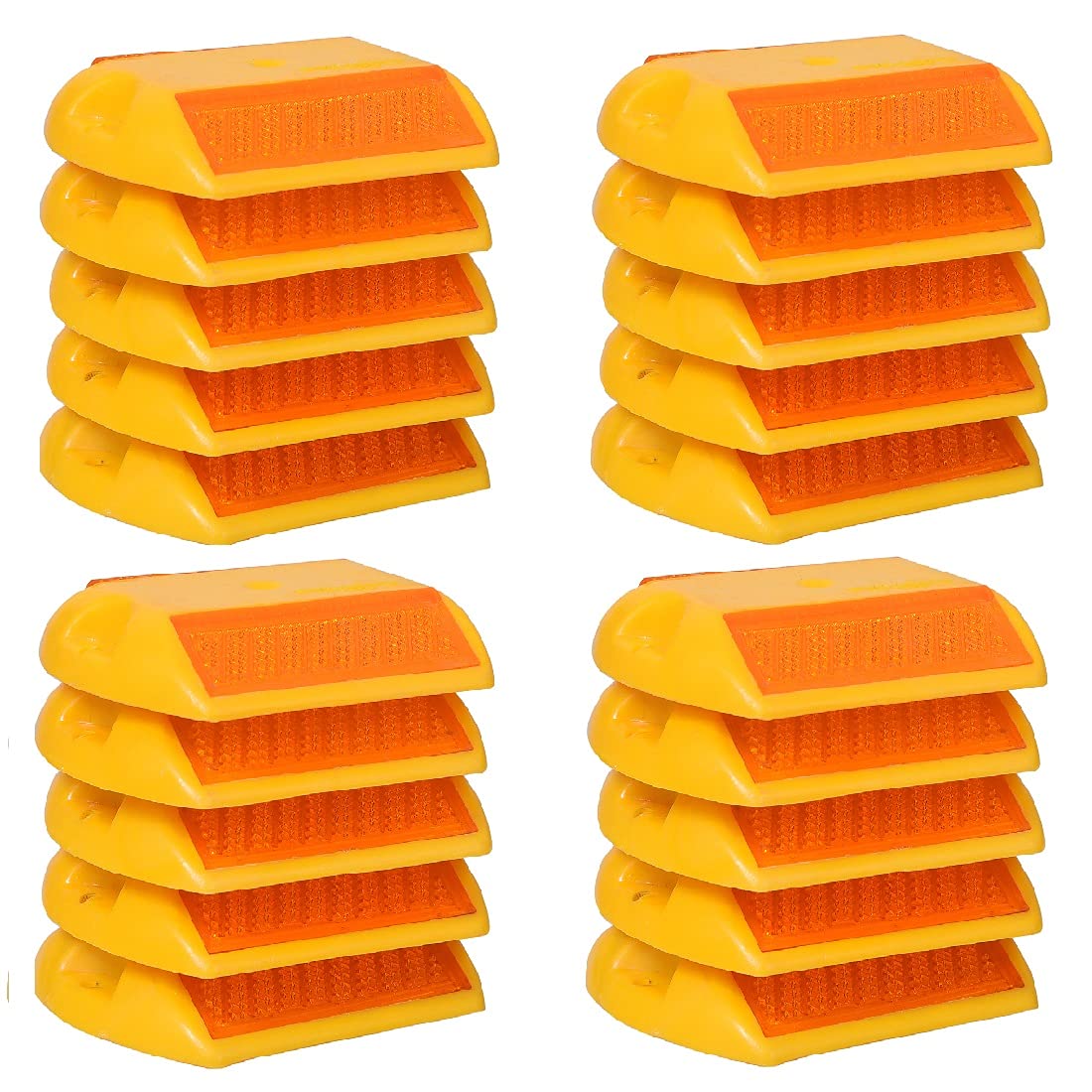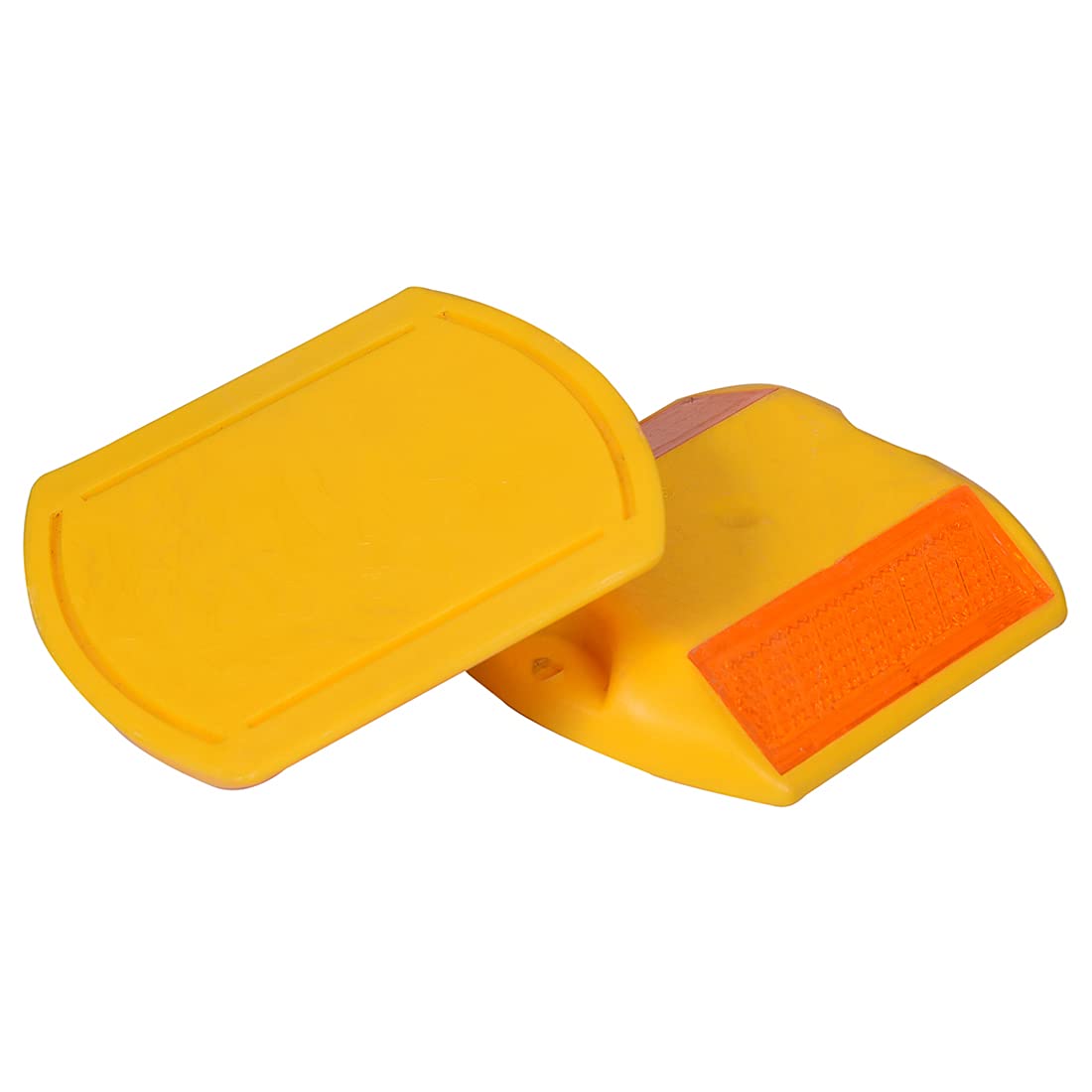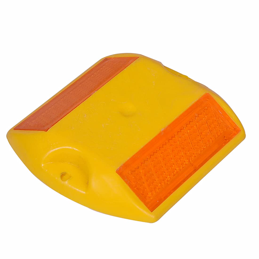 - Road stud is made of ABS Plastic material. the stud is dynamically designed so that it can bear maximum load. Highly reflective reflectors molded in PMMA material are fitted on the stud. The reflectors are welded with a ABS base plate through ultrasonic welding process to that water and dust can not touch reflector’s inside area to maintain its reflectivity for a long time. All Plastic Road Studs are fitted with Ultrasonic Welded reflectors. Stud can paste with apoxy on road.
