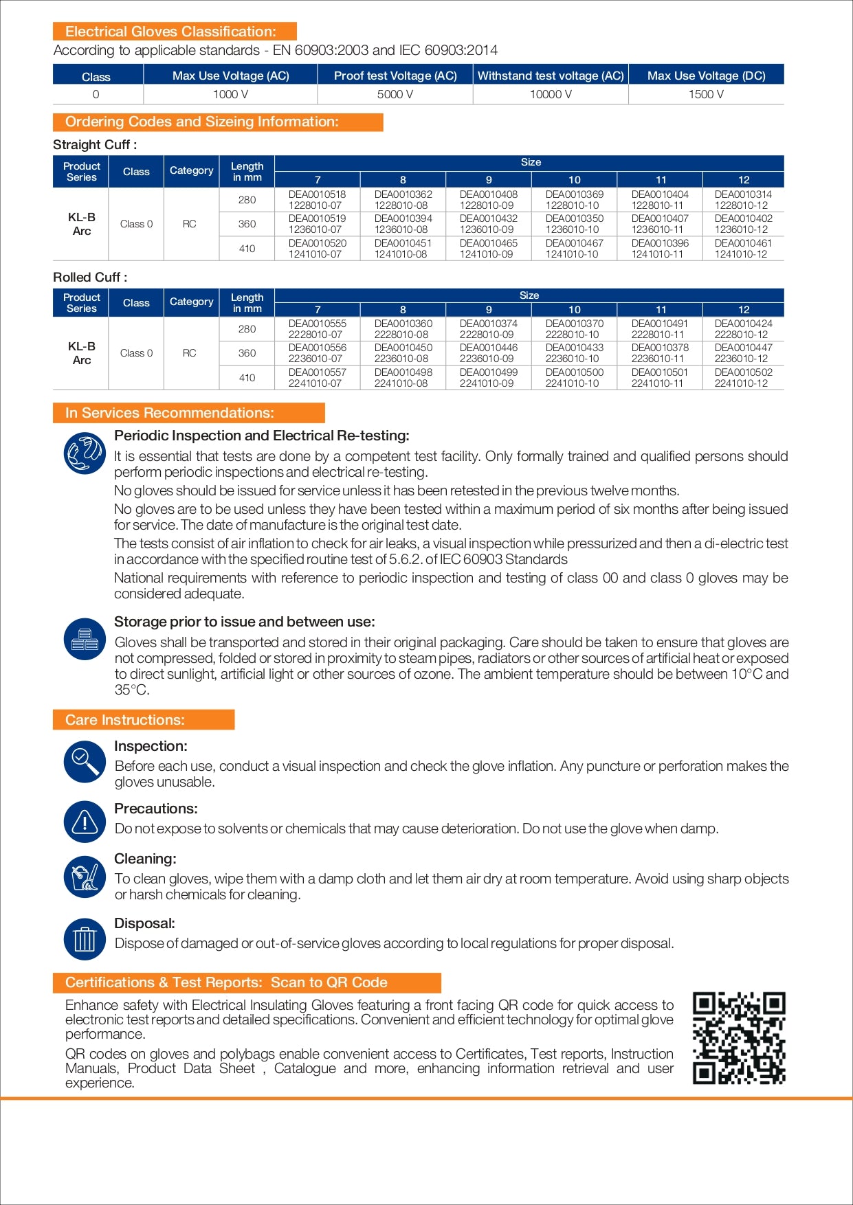 Raychem RPG Kamfet KL-B Series Class 0 Electrical Insulating Gloves are engineered for low-voltage electrical applications up to 1,000 V AC. These gloves deliver certified arc-flash protection with superior comfort, flexibility, and excellent dexterity for precision electrical work.