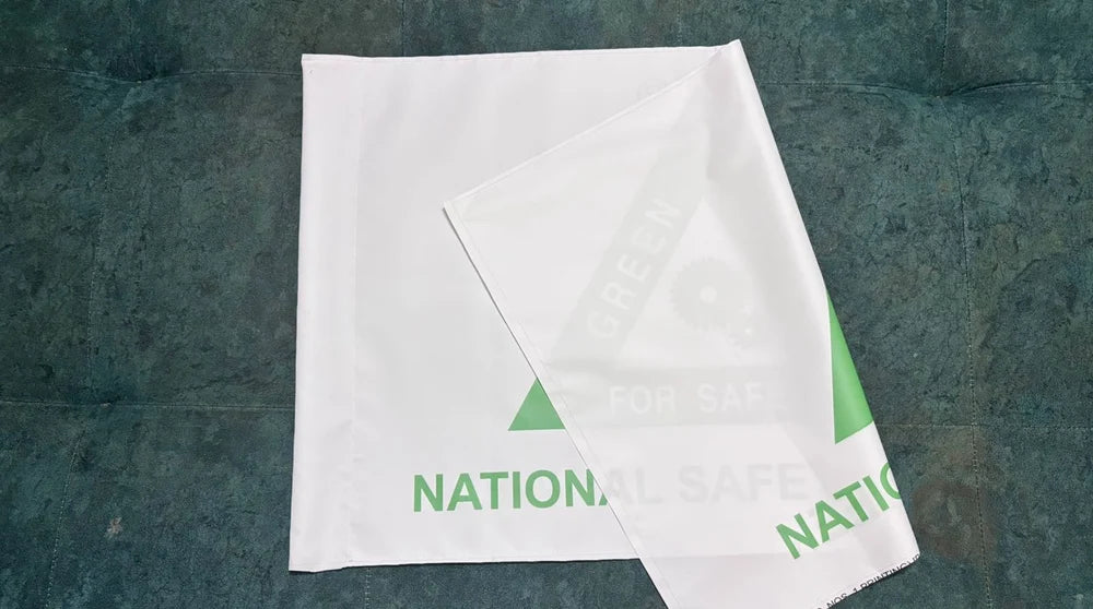 Enhance workplace safety awareness with our White Satin National Safety Week Flag (30" x 20"). Made from high-quality satin material, this rectangular UV-printed flag is perfect for industries, factories, and construction sites. Designed for National Safety Week celebrations, it serves as a powerful reminder to prioritize safety in the workplace.