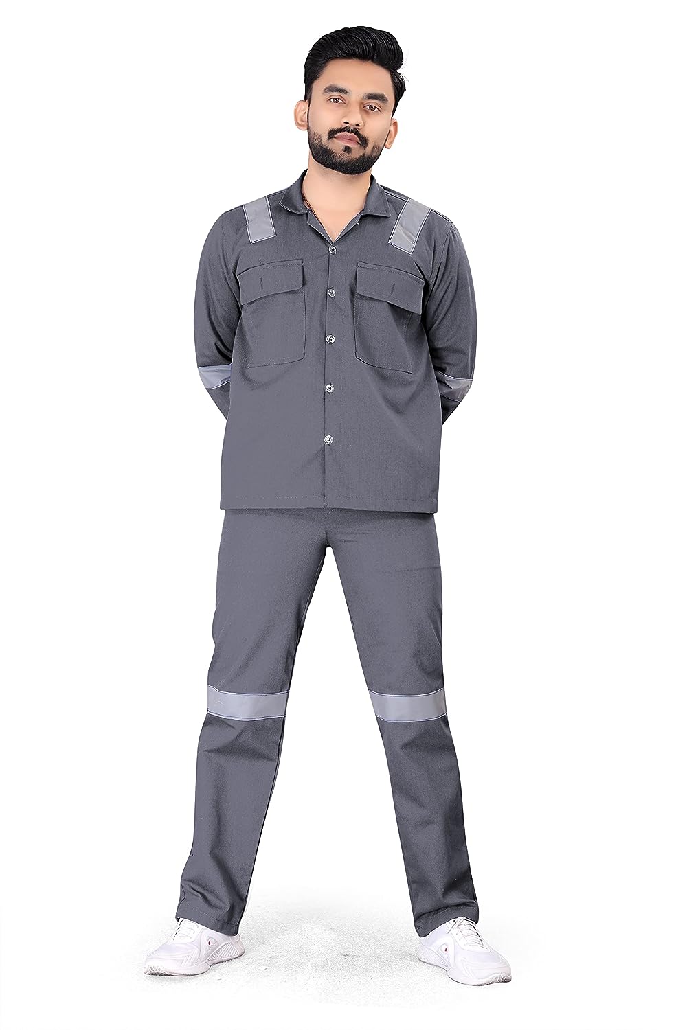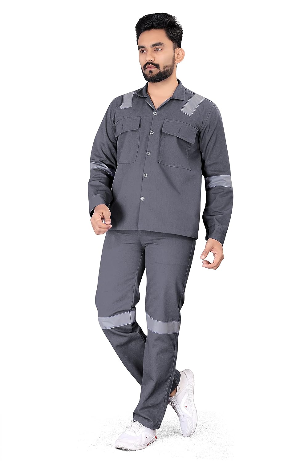 Men's Reguler Fit 100% Cotton Industrial Work wear Shirt and Pant with Two Inch Reflective Tape